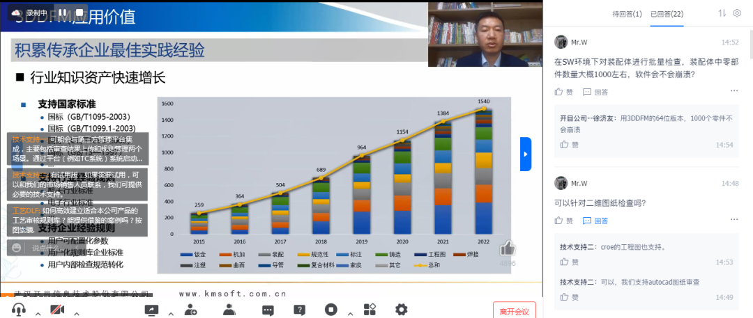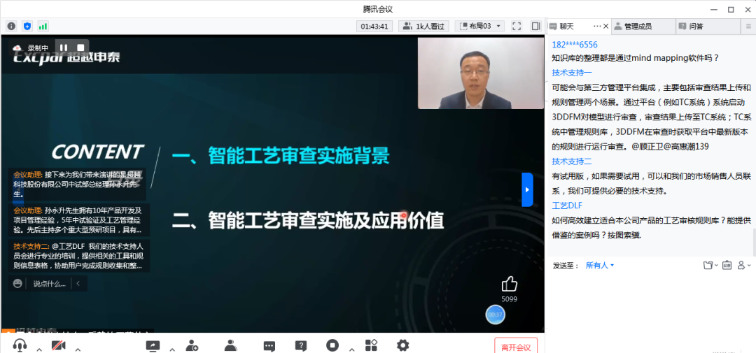 3DDFM是怎样融入超越科技现有的产品设计流程或工艺审查流程中的?超越科技如何利用3DDFM做干涉检查?3DDFM支持哪些专业的工艺审查?3DDFM中有哪些内容用户可以定制和扩展?在专家连线研讨环节,参会观众纷纷连线提问,与专家们聚焦智能三维工艺审查,围绕企业如何在早期阶段实现可制造性分析,进行深入研讨。专家们富有建设性的创见赢得了在线观众的一片喝彩,也为企业数字化转型提供了新思维、新方法。