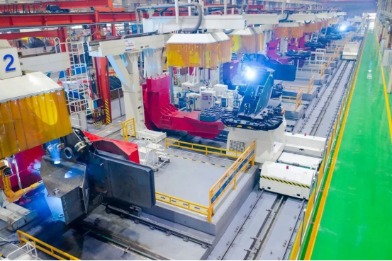 此外,徐工还通过数字化手段实现了零部件的柔性生产。不同重量、规格的零部件可以在同一条生产线上完成组装,每8分钟就有一台挖掘机下线。