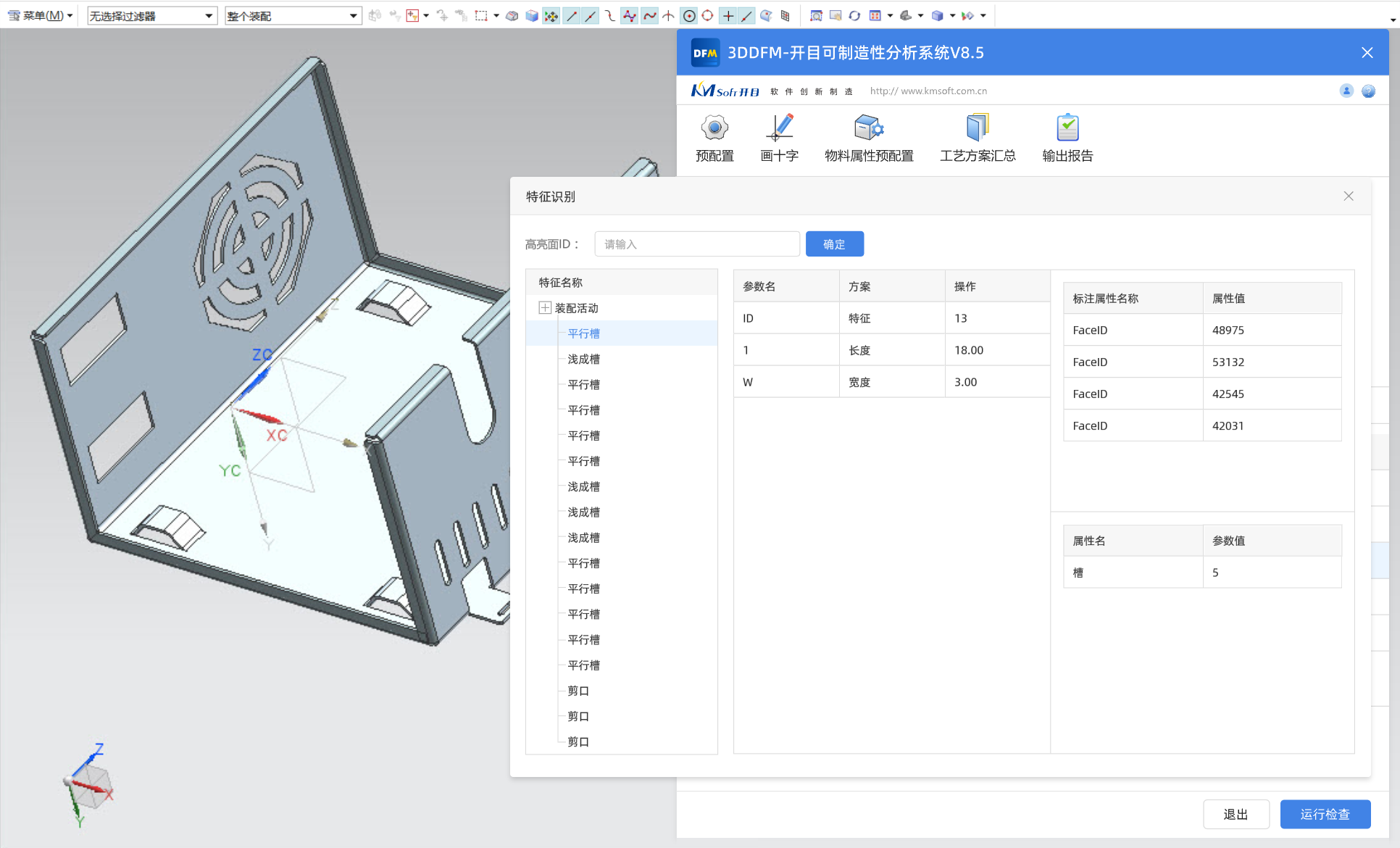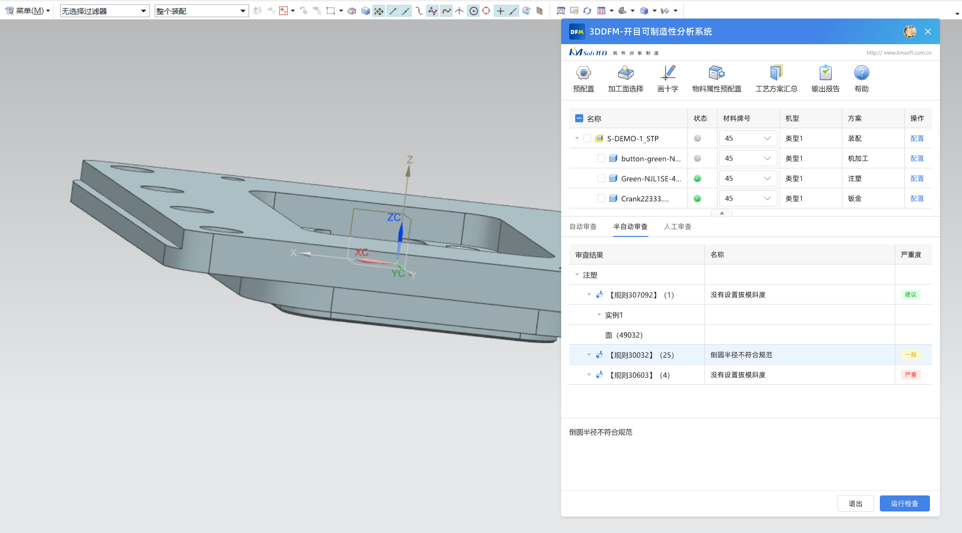 围绕企业实际的业务需求,3DDFM形成了覆盖机加、钣金等专业的审查规则库,实现在PLM系统中提取三维CAD模型的制造特征信息,在知识库的支撑下实现对产品设计工艺性的优化检查分析以及合规性检查,及时发现设计问题和缺陷,提高了审查效率及审查结果的一致性,避免后期的设计返工。
