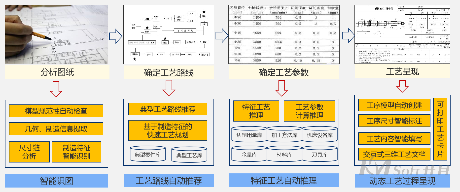 依托三维模型特征、工艺信息及尺寸参数,自动遍历生成含设备选型、工时核算、检验编码的结构化工艺路线。以数据驱动替代经验决策,规避人为失误,实现工艺决策智能化。